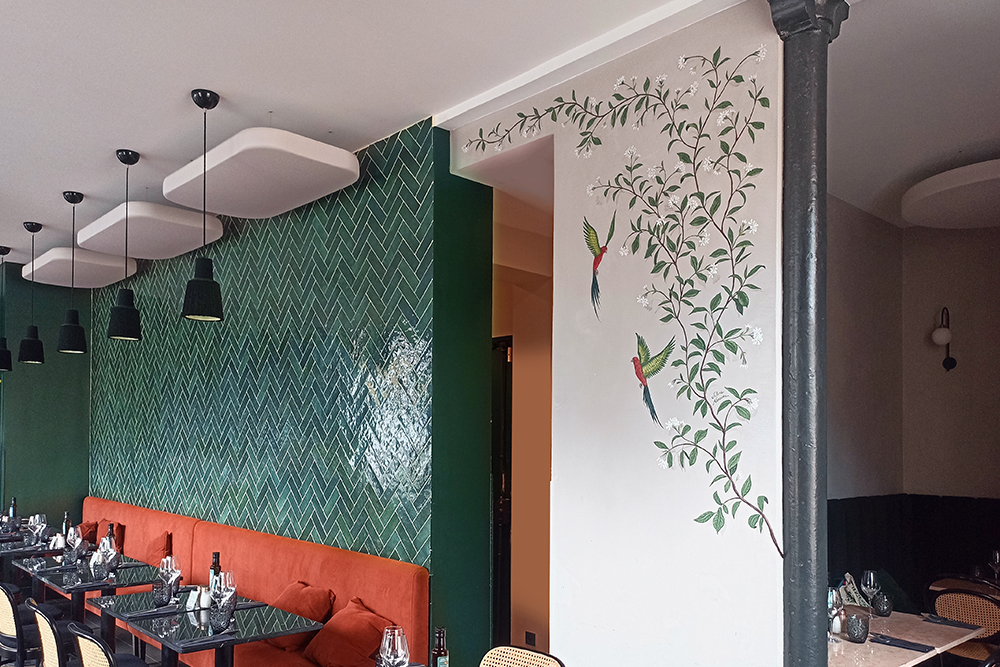 “Silvia is a very pleasant person to be with, but above all she is extremely talented, a good listener and a great resource. She made us a sketch, then a pencil on the wall to ensure the volume.the service does not leave your pieces loose very long since for such a creation it took only 2 days and a half, it does not necessarily show, but the painting is 2.60m x 1.50m, we are not on the stamp there