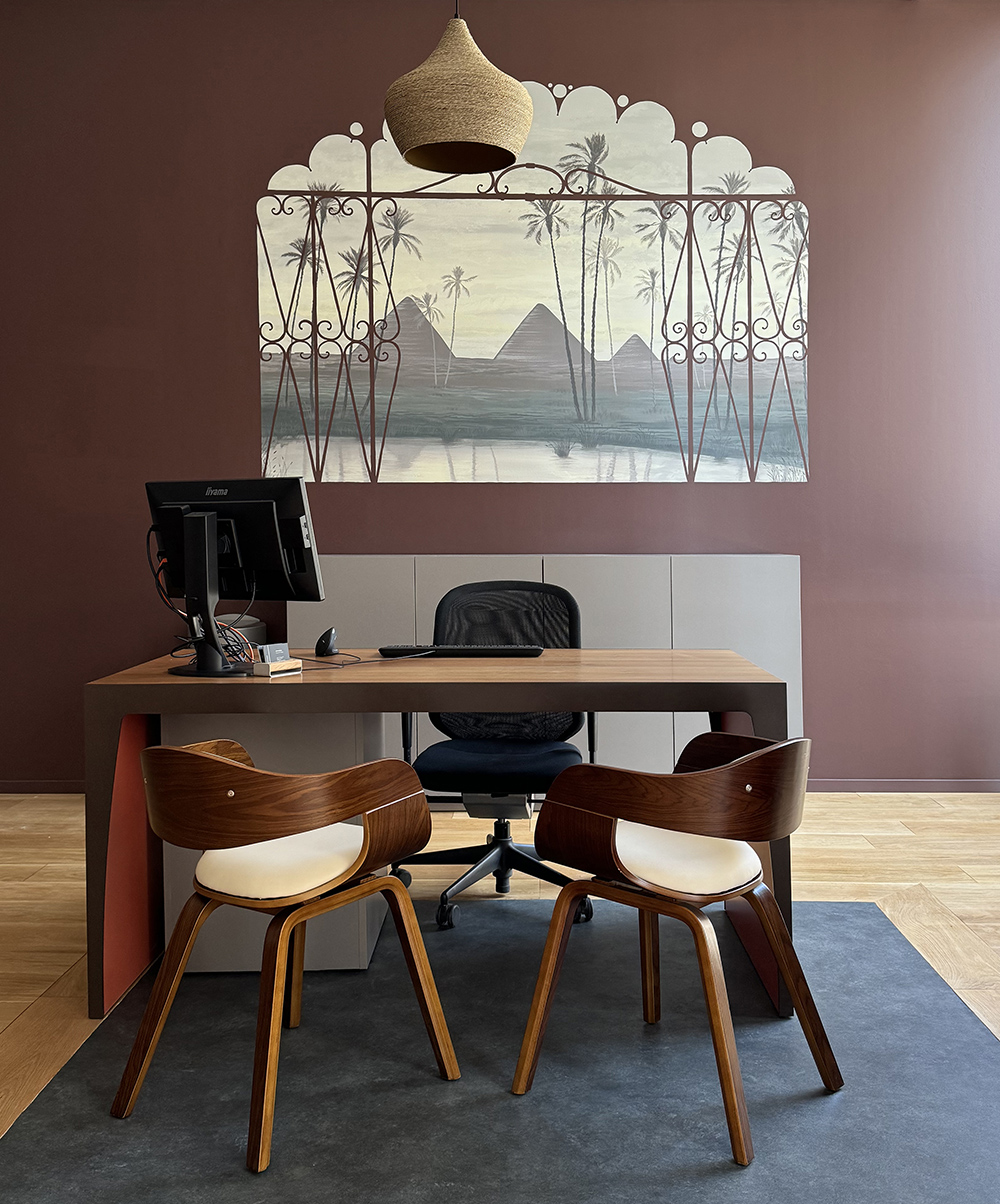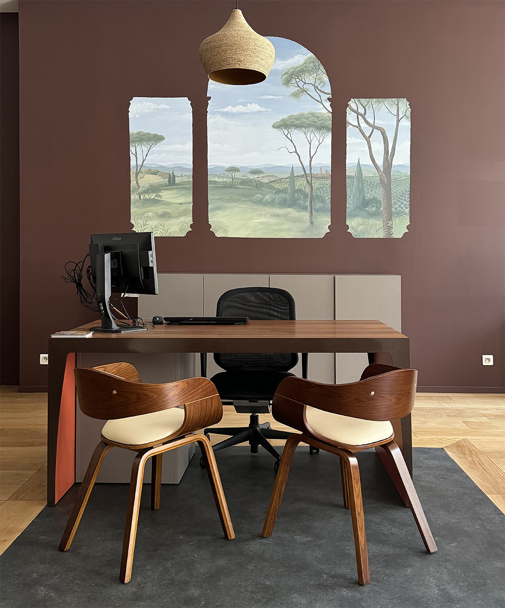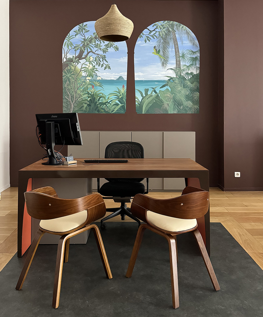 The Kuoni agency in Lyon has been transformed into a true gateway to the world, with three windows opening onto distant landscapes. Imagine taking a nap in the shade of a hotel room, gazing out the window. The dark wall enhances the brilliant light of the landscapes that unfold beyond.